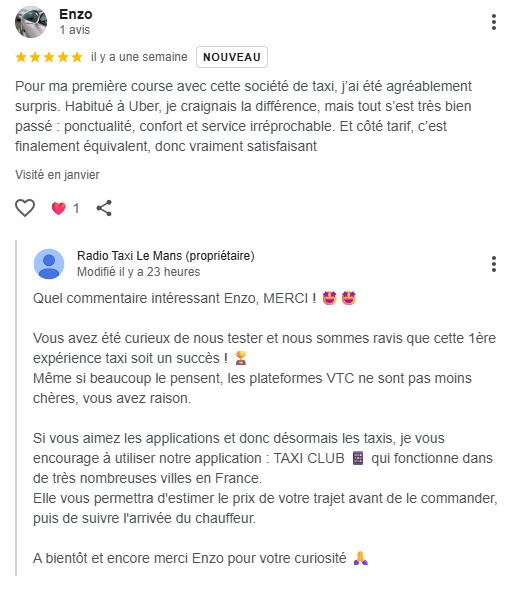 Notre taxi est disponible 7j/7 et 24h/24 au Mans